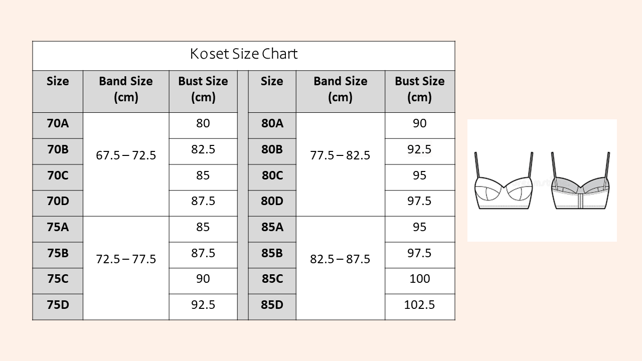 You may stick to your current bra size. However, it is best that your measure your band and cup size using a measuring tape and then refer to our size chart.